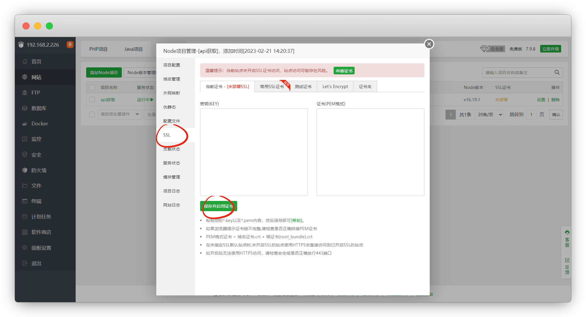 添加 SSL 证书,建议去服务器申请免费的SSL证书
