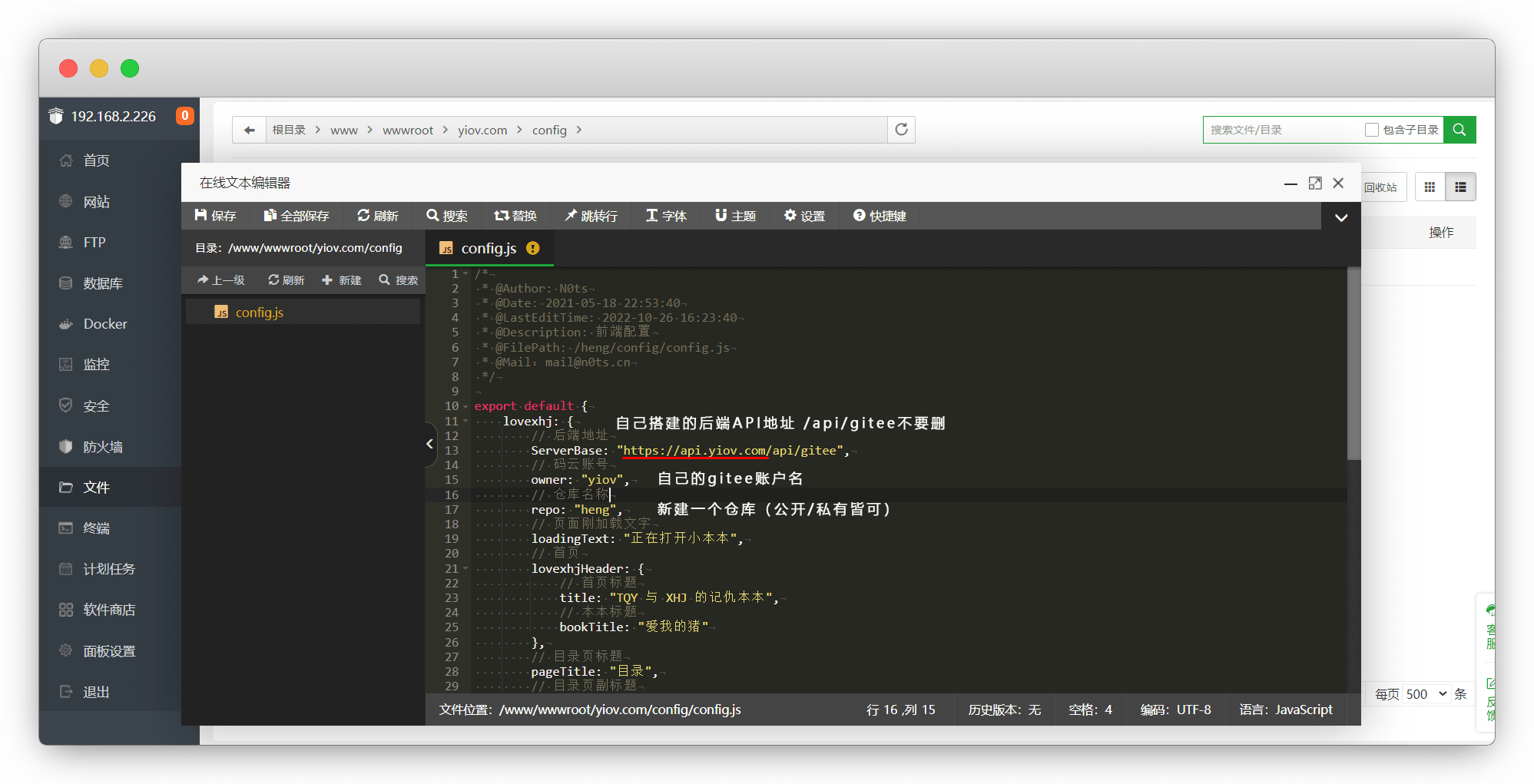 接下来我们来配置 config/config.js 文件,按需修改保存