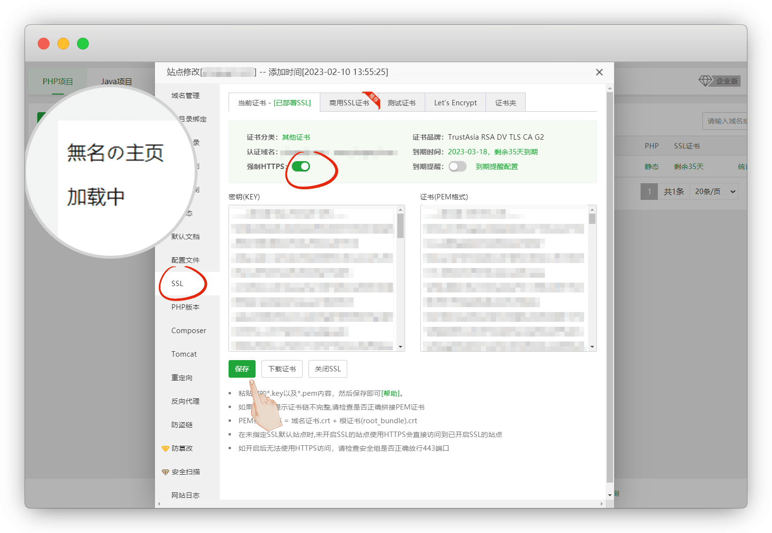 上传后访问域名,却只有文字,因为要开启https,直接SSL证书弄好了再开启