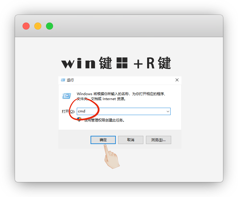 安装好后,我们运行 window键+R 进入 cmd 终端