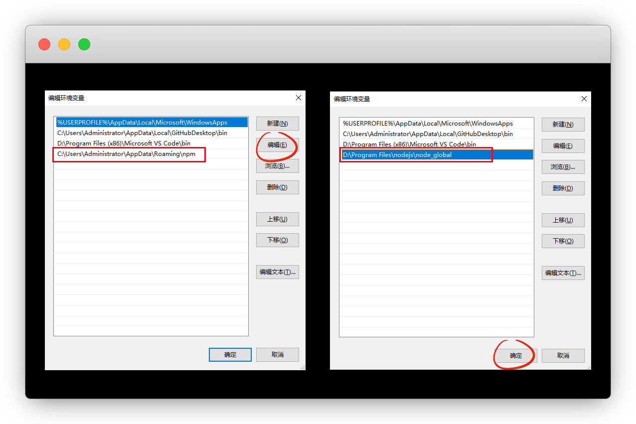 点 npm 路径 - 编辑,修改为 node_global 的路径后确定