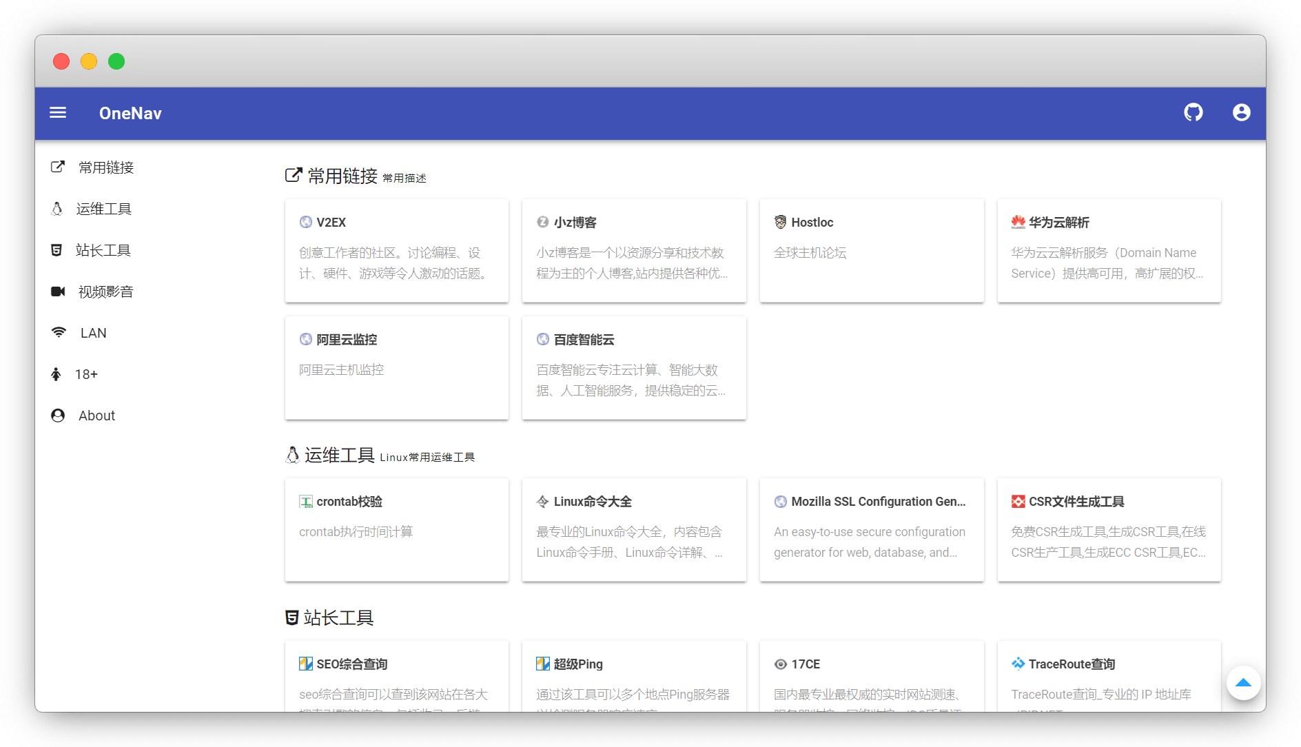 OneNav是一款开源免费的书签(导航)管理程序,由 @xiaoz 使用使用PHP + SQLite 3开发