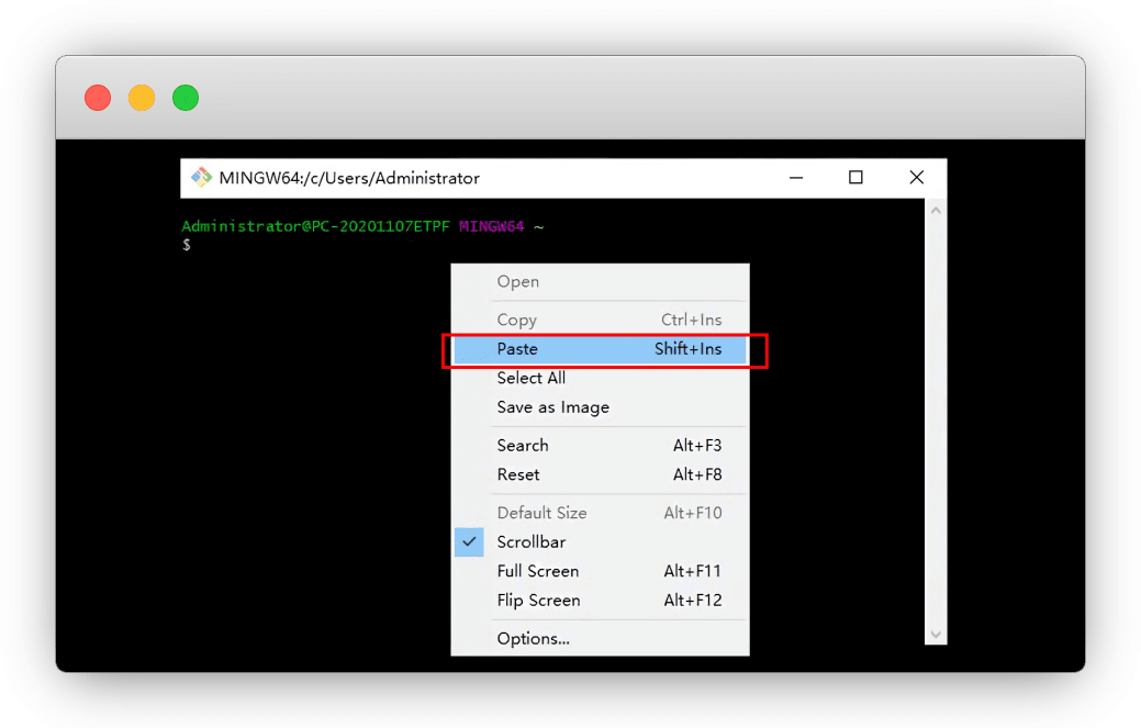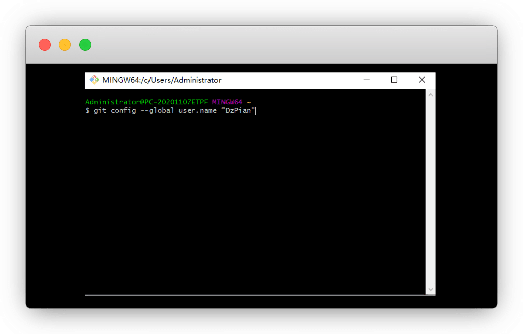 git config --global user.name "DzPian"鼠标右键 - Paste 粘贴(不要用ctrl+v) - 回车