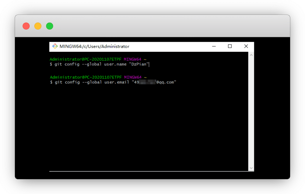 git config --global user.email "49****@qq.com"