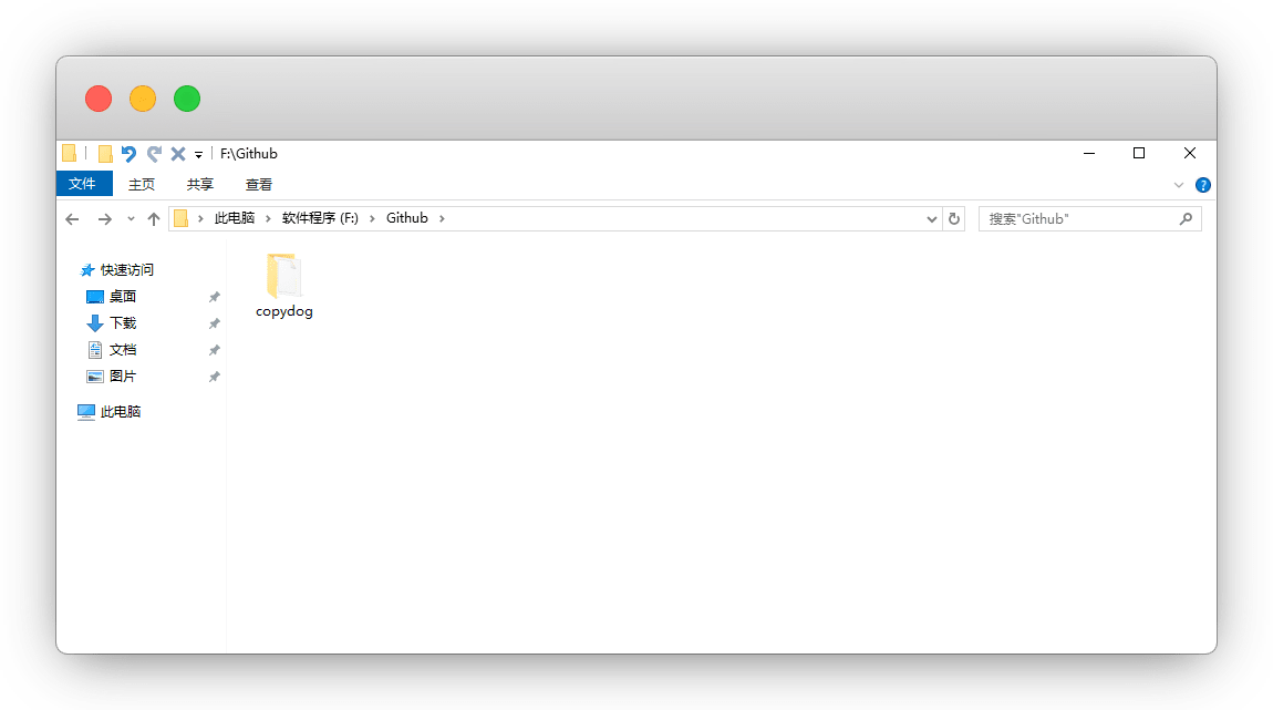 例:我在F盘新建了一个文件夹,命名为Github,然后再创建子文件夹copydog