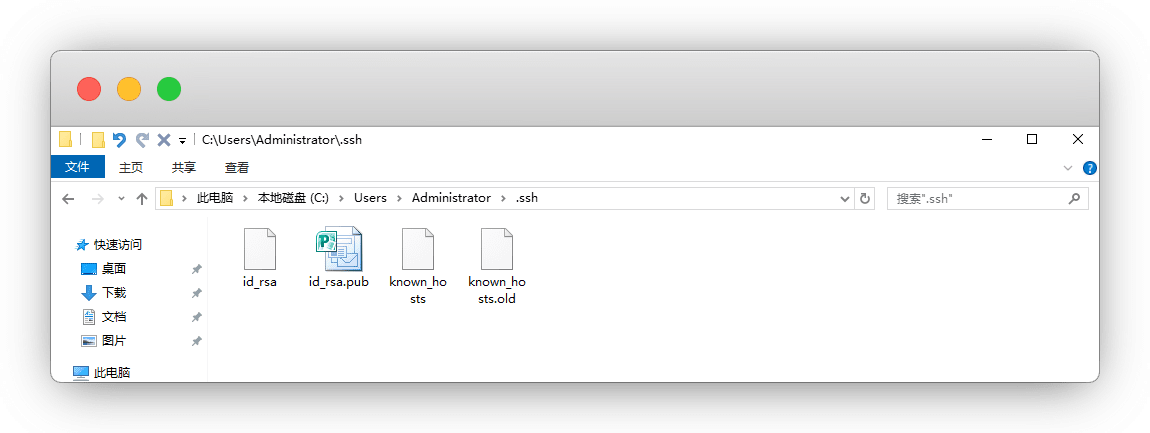 在 C:\Users\Administrator\.ssh 目录,生成了 id_rsa 和 id_rsa.pub 两个秘钥文件