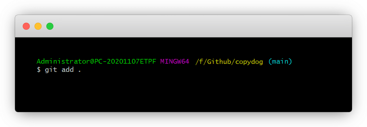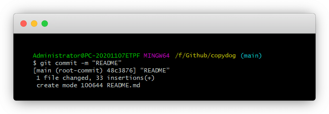cd /f/github/copydog或者简单粗暴git bash文件夹,空白处,鼠标右键- Git Bash Here ,一样也能进入页面
