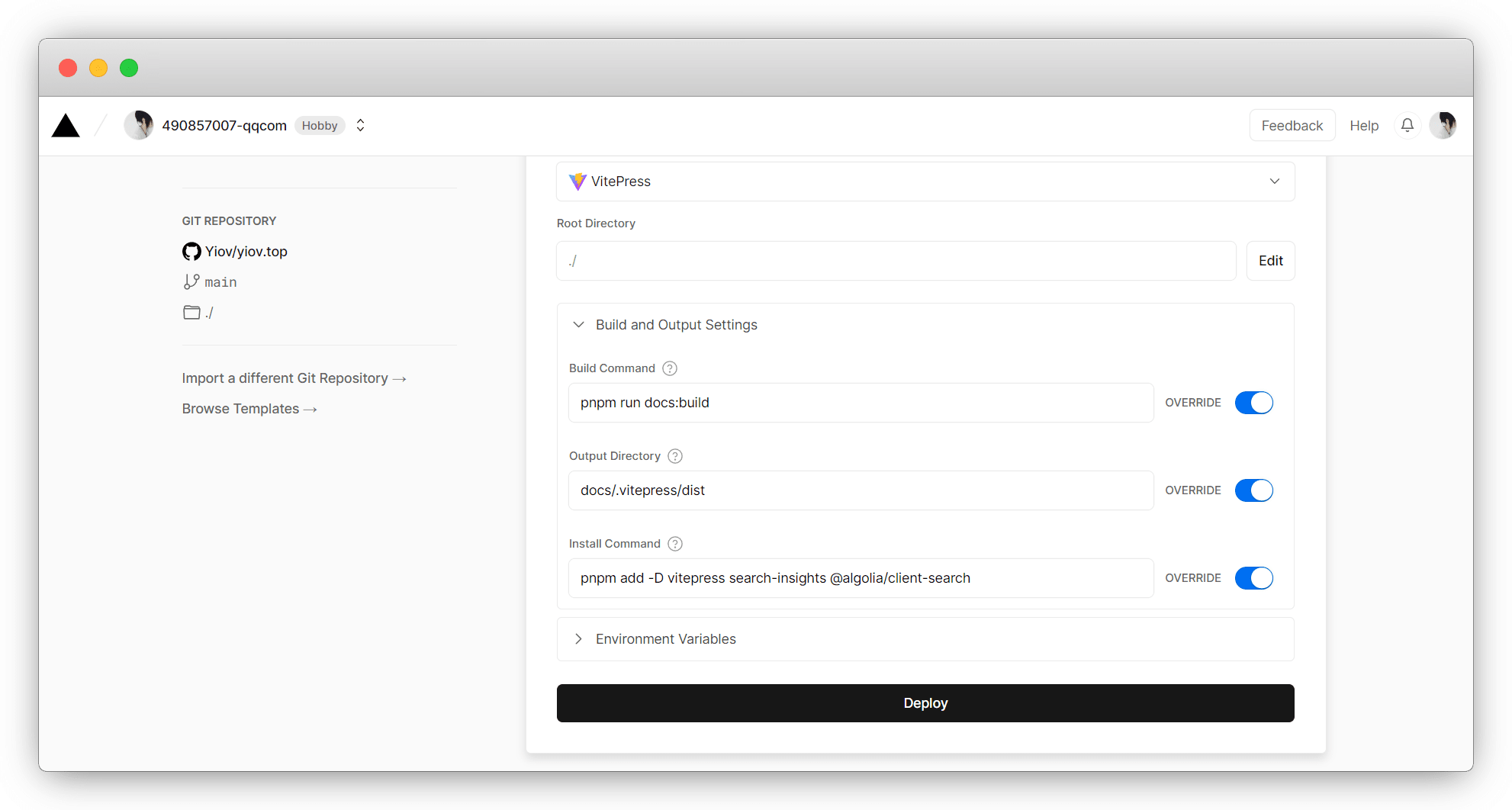 我是VitePress,根据文档命令改正确,然后 Deploy 发布