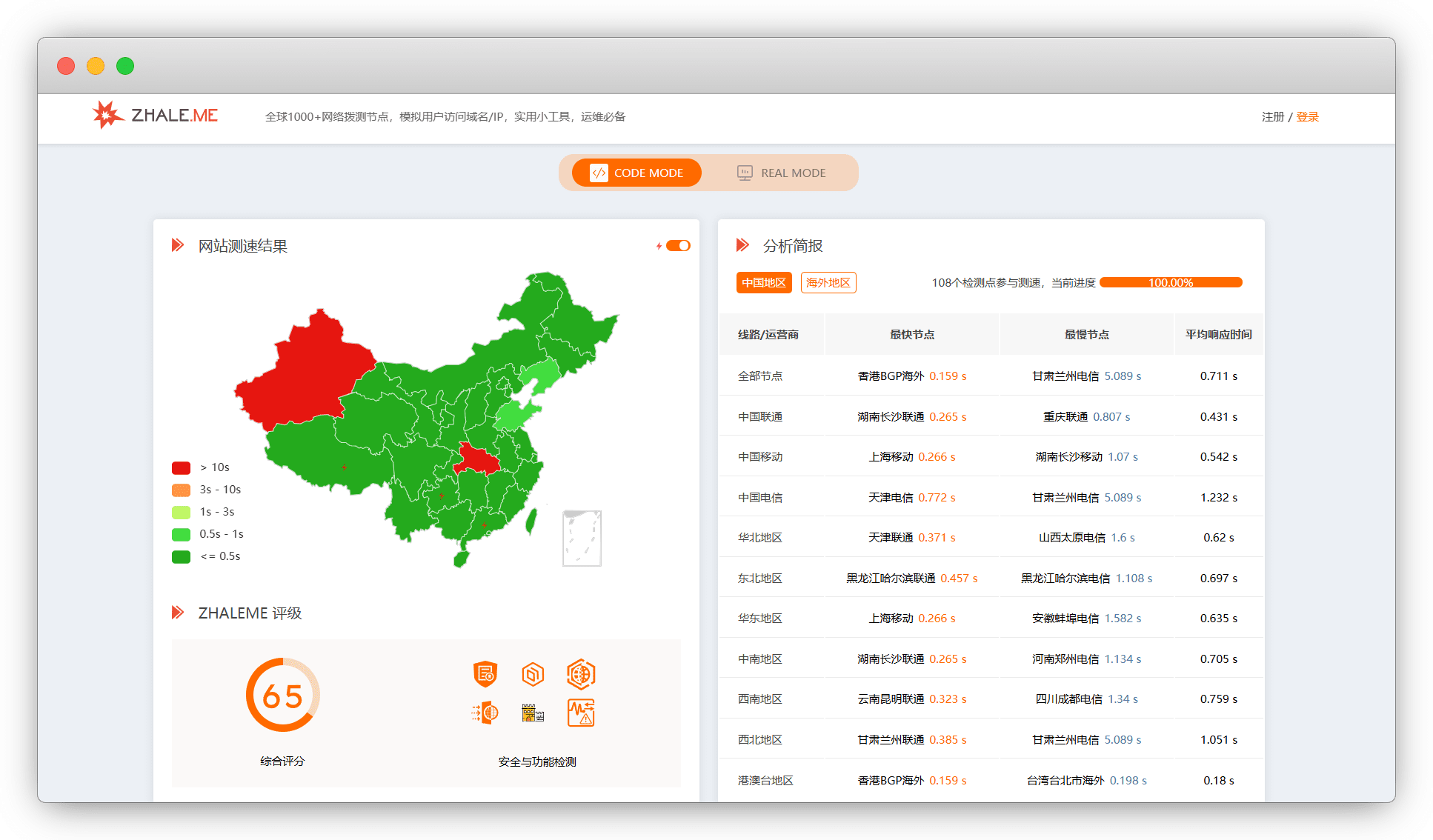 返回炸了么,再次测速,发现基本上都绿了