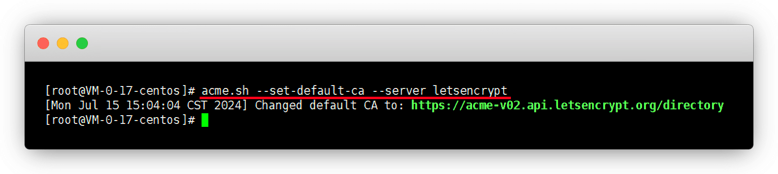 acme.sh --set-default-ca --server letsencrypt