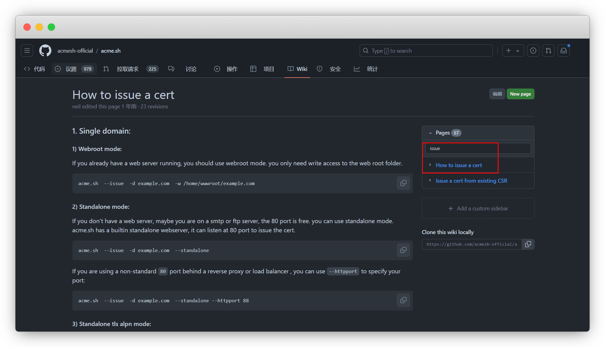 在 wiki,搜索 issue,点击 How to issue a cert