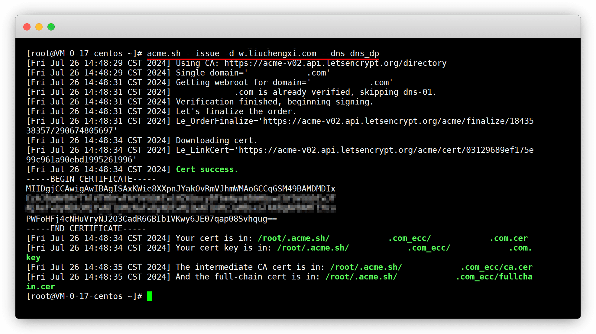 - Installed to /root/.acme.sh/acme.sh:主程序目录