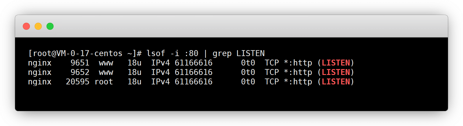lsof -i :80 | grep LISTEN未占用就直接申请,如下图被占用,改端口申请即可