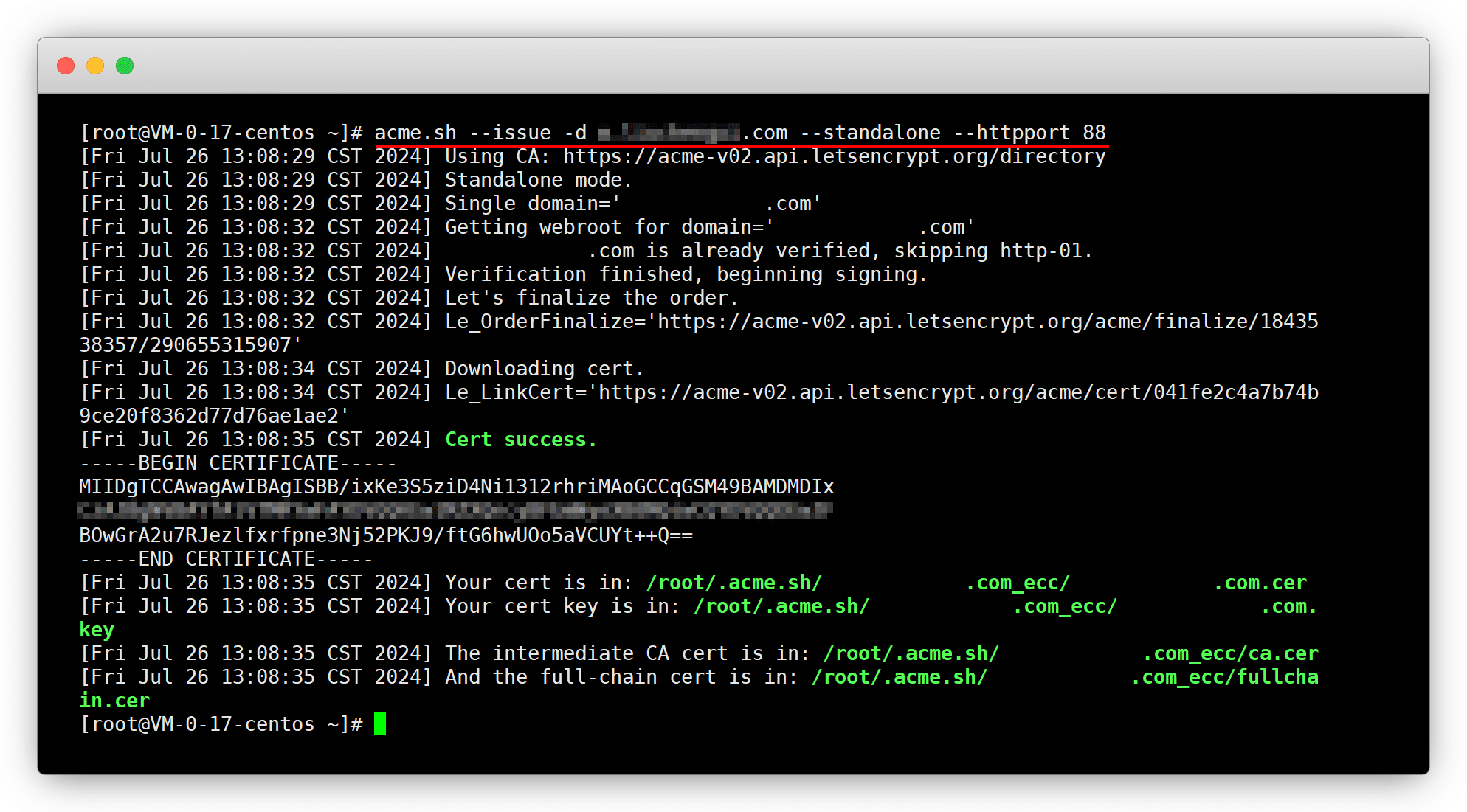 acme.sh --issue -d example.com -d www.example.com --standalone --httpport 88