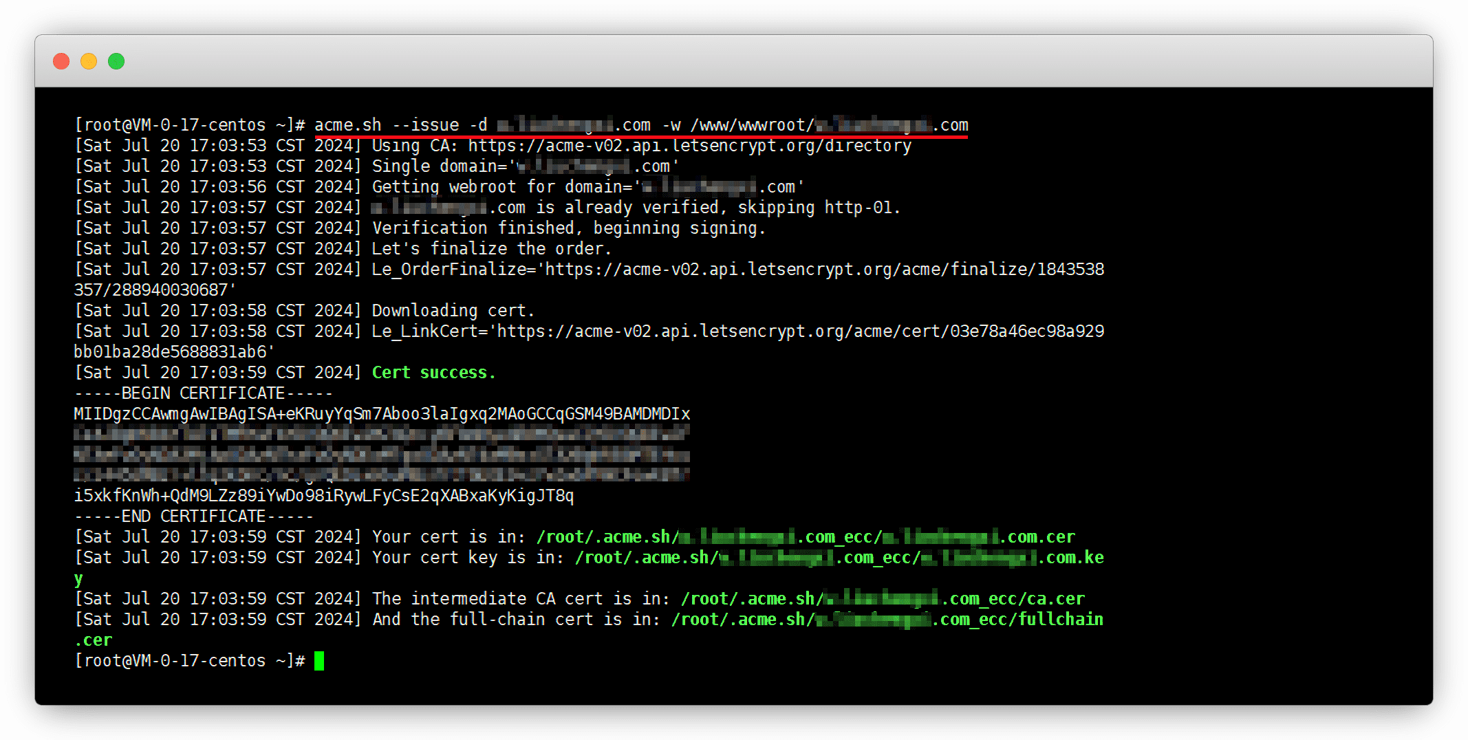 acme.sh --issue -d example.com -d www.example.com -w /www/wwwroot/example.com