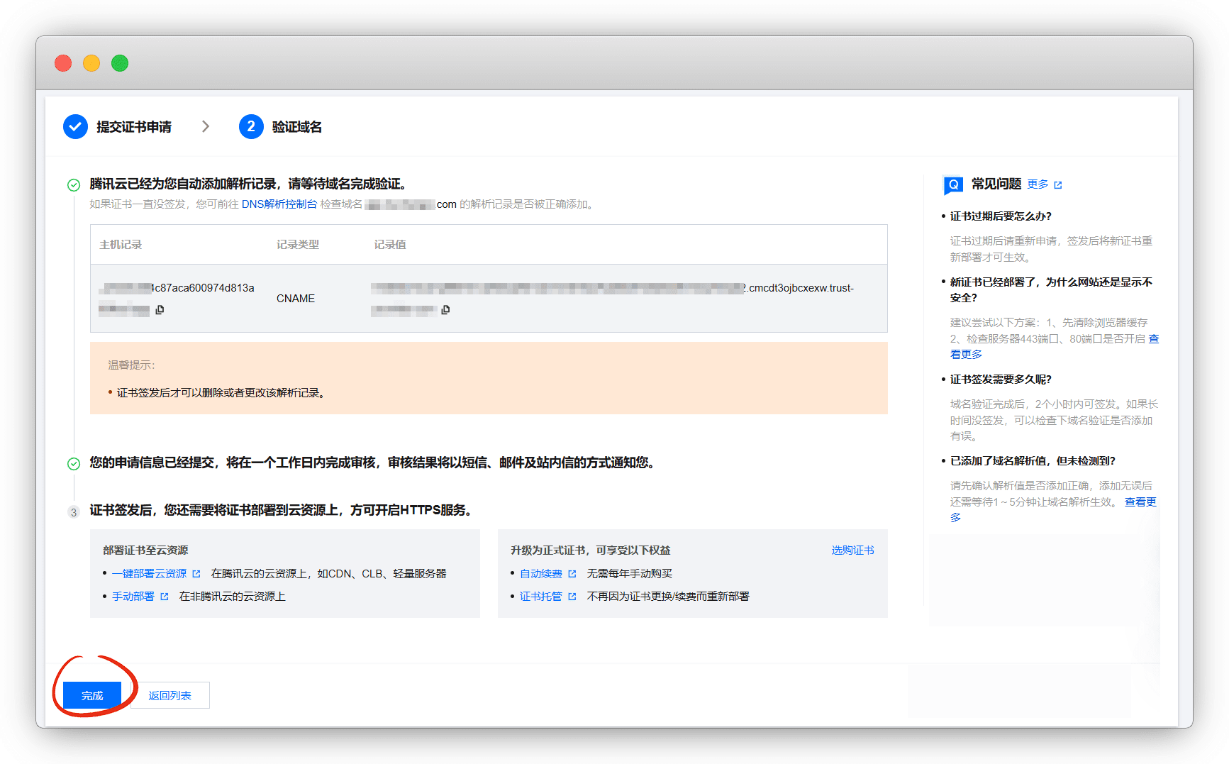 会自动添加解析记录,点完成