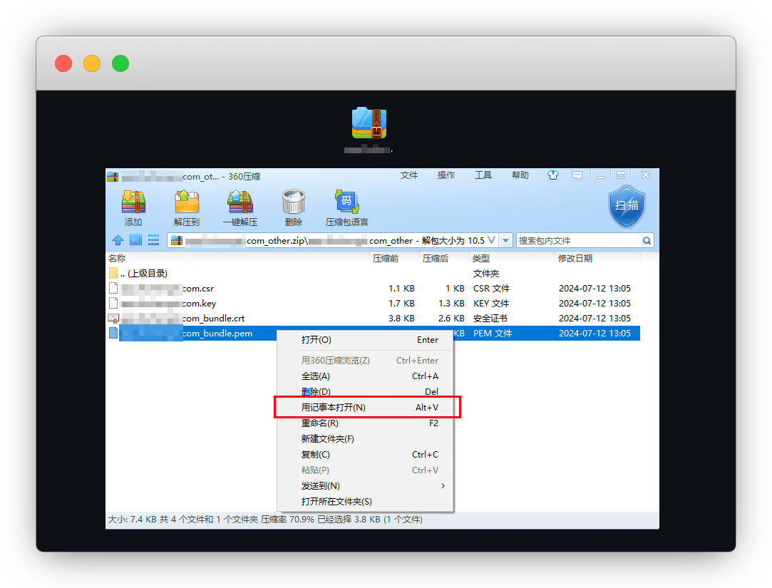 分别用记事本打开 *.pem 文件 和 *.key 文件,复制